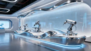 – 进门是AI互动迎宾屏:识别客户后自动播放定制欢迎语;