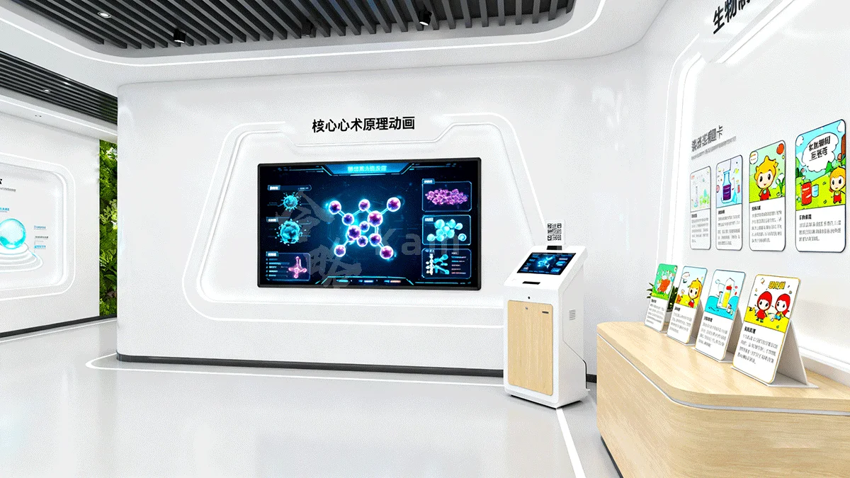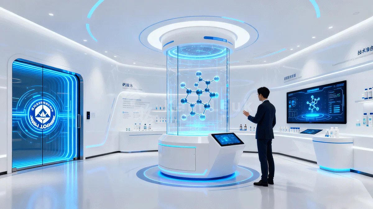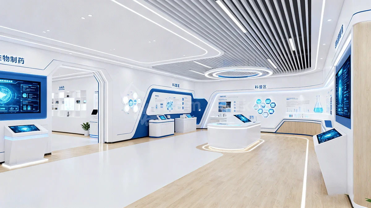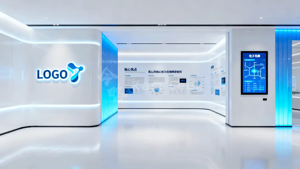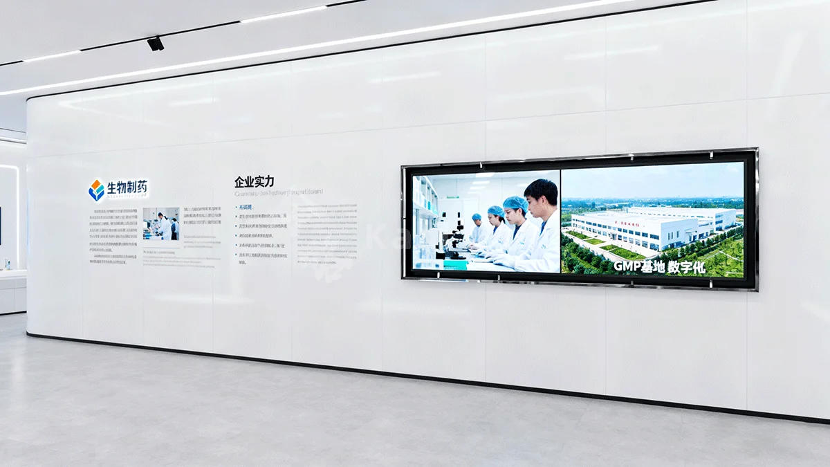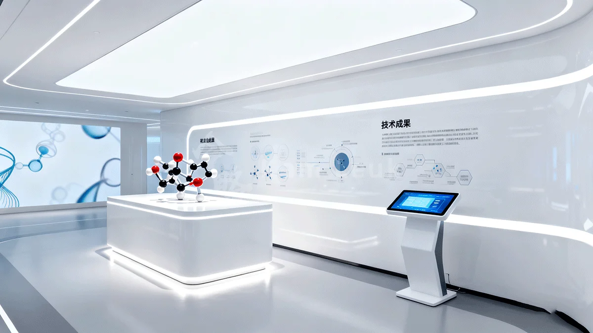 • 技术成果:用 “模型 + 触摸查询系统”,例如展示核心产品时,可放置分子模型,搭配触摸屏查询研发过程;