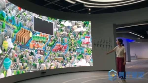• 入口引流区:在展厅入口直角处布设 L 屏,主屏放品牌形象大片或爆款产品动画,侧屏放 “展厅导览地图” 或 “互动活动预告”(如扫码抽奖、打卡任务),用视觉吸引力第一时间留住观众,同时承担导览功能。